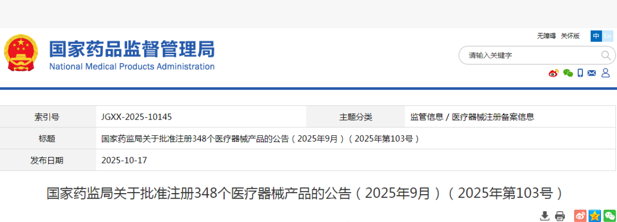 2025年9月批准注册医疗器械产品目录