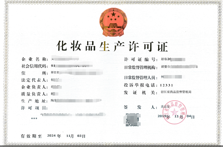 化妆品生产许可证-省市场局发证-有效期五年